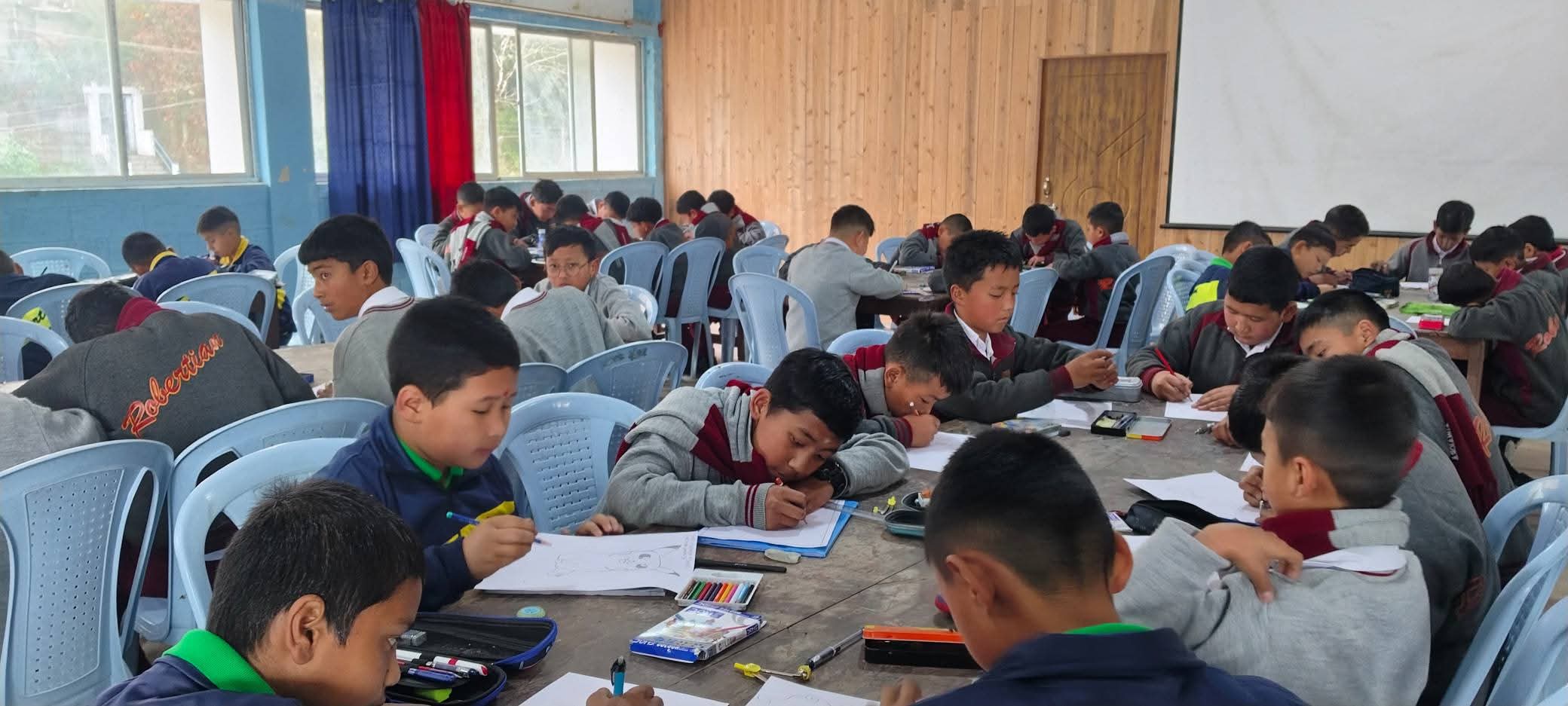 The competition was supervised by Saibal Sir and Ashish Ariel Sir. The Headmaster Fr. Michael Singh visited the reading room to congratulate and appreciate the participants. He encouraged the boys to enhance their artistic skills further.
